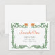 Este elegante convite para o casamento foi inspirado pela beleza do movimento Art Nouveau. Uma fronteira elaborada de verde e tulipas enquadra o texto.