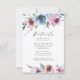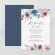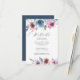 Na moda, cartões elegantes de cerimônias de casamento com detalhes de seu casamento com buquês de cima e de baixo de rosas roxas, azuis e mauve de aquarelas lush folhas verdes. Personalize o cartão adicionando informações importantes, como acomodações de hotel, site de casamento, instruções, etc. Projetado para coordenar com nossa coleção de casamento Midnight Blooms.