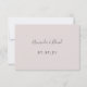 Um cartão RSVP elegante e simples para um casamento com modelos para resposta por data e nomes. Um fundo branco chic na frente. Decorados com esférulas botânicas e folhagem de cor aquosa de rosa poeirento. O título Resposta Rápida é escrito com um grande script de estilo manuscrito moderno. Fundo: fundo rosa, cor de poeira, cinzas escuras.