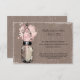 Perfeito para um casamento no estilo country ou talvez você apenas ame Mason Jars! Vintage antiga Mason Jar pendurado em um gancho com vagalumes voando ao redor.Um fundo angustiado Vintage (cor Autumn Brown DS321-9c) com o enforcamento Mason Jar e flores silvestres em cores de tons claros claros. Se tiver alguma dúvida sobre este design ou quiser uma mudança de cor, envie-me um e-mail para paula@labellarue.com SE PRECISAR DE UMA OPÇÃO DE MENU ADICIONADA OU DE INFORMAÇÕES ADICIONAIS QUE ME PERMITAM SABER. Verifique também se o cartão de CONVITE e RECEPÇÃO WEDDING corresponde!