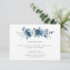 Um cartão de informação de recepção de casamento com um tema azul e uma cor azul-d-água floral para a sua recepção de casamento. você pode personalizar o texto e a cor para corresponder ao seu próprio tema de casamento.