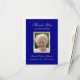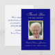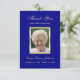 Este cartão de agradecimento por simpatia 3,5 x 5 polegadas apresenta seu ente querido na frente com um fundo azul marinho. O nome do seu ente querido aparece abaixo da foto, bem como as datas. Acima da foto, estão as palavras "Obrigado por sua simpatia". No verso do cartão, um verso de agradecimento aparece em azul marinho com um espaço para você personalizar seu nome. Copyright simpatiaagradecimentos