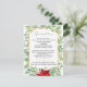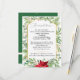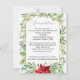 A design do cartão de casamentos de Natal dos Partidos Temáticos apresenta botânicos de aquarela em diferentes tons de verde de férias e acentua-se com uma bonito poinsettia de aquarela e coloração oca-d-água e bagas. A tipografia serif tradicional é definida em forma geométrica dourada com fundo branco nítido. #CasamentoNatal #CasamentoFeriado #Casamento