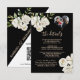 Cartão romântico e único de Pormenores de Casamento floral preto e branco. Douradas letras e toques de caligrafia são um acompanhamento perfeito das lindas flores junto com a linda foto. Para qualquer pergunta sobre design ou personalização adicional e/ou itens correspondentes, basta enviar um chat ou um e-mail para charmdesignstudio@rcn.com e teremos todo o prazer em ajudar.