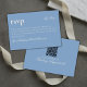 Torne fácil para os seus convidados confirmar presença no seu grande dia com este Cartão de Confirmação de Presença de Casamento QR Azul Atemporal de Dinheiro Antigo! Este design apresenta fonte script e fundo azul atemporal. Personalize seus detalhes e o código QR do site do casamento no verso no Zazzle! Tem um pedido personalizado? Envie-me uma mensagem!