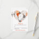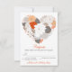 Este convite de casamento floral e caprichoso apresenta rosas laranja, cinza e marrons em forma de coração, folhas e outros tipos de flores. Este cartão de confirmação de presença faz parte de um conjunto de convites de casamento. Itens correspondentes estão disponíveis abaixo.