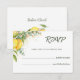 Este cartão de confirmação de presença de casamento apresenta um design fresco de aquarela botânica com limões e folhagens de eucalipto.