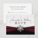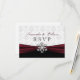 Um lindo tema de inverno com uma profunda fita burgundy, floco de neve prateado e um adorável fundo damasco branco para estes cartões de confirmação de presença que você personaliza para o seu dia mágico que se aproxima.
