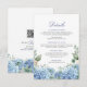 Nosso Cartão de Detalhes da Hydrangea Azul é a maneira perfeita de compartilhar informações essenciais com seus convidados. Apresentando elegantes drangeas de aquarela em tons de azul macio, esta carta maravilhosamente projetada complementa sua suíte de casamento enquanto fornece detalhes de local, acomodações ou notas especiais de uma forma na moda e coesa.