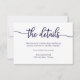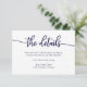 Cartão de Detalhes do Casamento Branco Azul Marinho Caligrafia