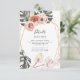 Cartões únicos de cerimônias de casamento tropicais, com seus detalhes de casamento cercados por uma falsa estrutura geométrica de ouro, folhas tropicais verdes escuras, peônias e orquídeas embaçadas. Personalize o cartão adicionando informações importantes, como acomodações de hotel, etc. A parte de trás da carta de detalhes do casamento tropical apresenta um fundo de aquarela embebido. Projetado para coordenar com nossa coleção de casamento Tropical Boho.