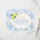Envie informações adicionais para o seu evento com este lindo cartão de detalhes italianos com azulejos azuis e limão. Com um estilo toscano de Positano, este design é perfeito para qualquer evento de primavera ou verão.