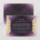 ***FAUX FOIL*** Descubra a tendência de Gatsby do Excelente com este Design - Como esta placa de resposta de tendência dará aos seus convidados o teaser ideal para o seu dia especial. Placa de receptáculo Gatsby Geométrica do Excelente Deco - design surpreendente com linhas de deco artístico no estilo Gatsby do Excelente. Muito moderno, moderno e elegante. Folha de ouro roxa escura na parte traseira do cartão e do ouro de folha metálica, fornecendo detalhes complexos à frente e atrás do cartão. ***isto é ouro falso, folha não será impressa como folha de alumínio real.*** Rico e casamentos formais. cor púrpura escura na parte traseira da placa. Avant-Garde. ***NENHUMA FOLHA***