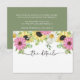 Traga o charme rústico para sua celebração com este cartão de detalhes do casamento de girassol com margaridas de aquarela, flores cor-de-rosa e caligrafia elegante. Perfeito para fornecer aos convidados informações essenciais como local e acomodações. Uma bela partida para o outono, verão ou casamentos de vassoura. Personalize facilmente para ajustado do seu grande dia.