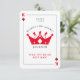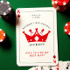 Este Rei dos Diamantes tocando cartão de padrinho de casamento com tema de cartão apresenta símbolos de traje de cartão e texto personalizado, oferecendo uma maneira única de pedir aos seus amigos mais próximos que se mantenham ao seu lado no dia do seu casamento. Perfeito para uma noite de pôquer ou para um tema de casamento inspirado no casino de Las Vegas, é a escolha ideal para pedir ao seu melhor amigo, irmão, ou a qualquer pessoa especial que faça parte do seu grande dia. Uma maneira memorável e divertida de se propor aos seus padrinhos de casamento.