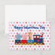 Aí vem o trem Namorados. Essa bela trio, um elefante um hipopótamo e uma girafa são passageiros neste trem adorável. O fundo é um padrão sutil de bolinhas. Todo texto na frente pode ser personalizado. NOTA: Cartões são deixados deliberadamente vazios, nas costas, para que as crianças possam assinar seu nome.