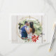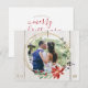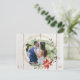 Este cartão de Natal rústico / feriado dobra como um presente que pode ser emoldurado! Ele apresenta um fundo de madeira rústica com uma grinalda de poinsettia em aquarela com moldura dourada em torno da foto do seu casamento.