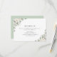 Um cartão de informação de recepção de casamento com um tema verde e flores brancas de aquarela para a sua recepção de casamento. você pode personalizar o texto e a cor para corresponder ao seu próprio tema de casamento.