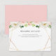 Cartão detalhado de casamento com flores cor-de-água rosa e uma falsa estrutura geométrica dourada.