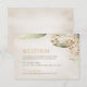 Folhas de verde botânico de cor aquática russa em verde-sábio e cor dourada em fundo de safra neutro e macio, cartões de recepção elegantes e românticos para casamento rústico vintage, casamento country e casamento de jardim o ano inteiro. Veja todas as peças correspondentes na coleção abaixo.