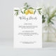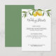 Cartão detalhado de casamento com ilustrações de limão e folhagem verde. A cor e o texto podem ser personalizados.