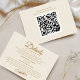 Este design apresenta um texto elegante em ouro com alojamento e dados de transporte. A parte traseira do cartão fornece espaço para você incluir o endereço do seu site de casamento e um código QR, permitindo que os convidados acessem facilmente informações adicionais sobre seu grande dia.