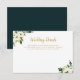 verde pintado e floral dourado. Você pode usar este cartão para obter informações adicionais sobre o casamento, como acomodações e direções.