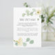 Nossa elegante placa de detalhes de aquarela apresenta um belo arranjo de flores brancas e um verde sutil em um fundo impressionante. Personalize esta design para incluir seus detalhes pessoais de eventos e encontre itens correspondentes para combinar perfeitamente com seu design de casamento e decoração de primavera em nosso compro.
