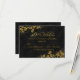 Dourado RSVP de Aniversário Fabuloso. Flores brilhantes elegantes em damasco preto. Por favor, note: todas as imagens planas!