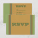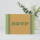 Cartão RSVP de evento de festa listrado castanho e verde. Personalize com suas próprias informações. Selecione Personalizar para fazer mais alterações