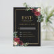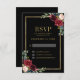 Marinho de cartão RSVP de casamento floral cor-de-rosa com modelo vermelho embebido em água, com Dourado quadro e ouro com folhagem botânica verde e folhas de eucalipto em fundo azul marinho. Esta design fácil de personalizar pode combinar facilmente com as cores do casamento, estilos e temas e é uma escolha perfeita para o meio do outono ou casamentos no inverno. Você pode encontrar mais designs correspondentes na minha loja ou entrar em contato comigo se precisar de ajuda na personalização do design.