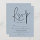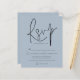 Um valor para o alternativo do ORÇAMENTO em tamanho menor de 4,5 x 5,6" de semirbrilho de 110 lbs, que é de espessura semelhante a um cartão postal (no entanto, não é adequado para uso como cartão postal). POR FAVOR, OBSERVE QUE HÁ UM convite por folha. Script de Orçamento Dusty Blue Wedding RSVP Uma tipografia de na moda em preto para o cabeçalho principal RSVP complementando o resto do texto que você pode personalizar facilmente.