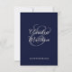 Confirme sua lista de convidados com este elegante cartão RSVP de casamento de dois lados. A frente apresenta um design moderno minimalista com um fundo branco limpo e um roteiro azul marinho ousado, que fornece uma maneira simples, mas bela, de os convidados responderem. O lado inverso ecoa o convite de casamento com um sofisticado design de roteiros azul e prateado marinho. Este cartão de RSVP de casamento é uma combinação perfeita para um tema clássico, náutico ou moderno de casamento, garantindo um olhar coeso e polido para a sua suíte de papelaria de casamento.