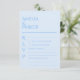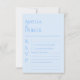 Adicione à sua suíte de papelaria de casamento com nosso cartão RSVP minimalista, projetado para corresponder ao nosso conjunto de convites de casamento azul minimalista. Esta placa apresenta um fundo azul claro, fazer fácil para seus convidados escrever suas respostas. O texto está em uma fonte azul vibrante que corresponde ao fundo do convite neste conjunto, garantindo um estilo contínuo. A tipografia cuidadosamente projetada complementa a estética geral, combinando simplicidade e funcionalidade. Perfeito para casais que valorizam o design moderno e coeso, este cartão RSVP é a adição ideal aos seus preparativos de casamento.