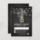 Cartões de resposta de casamentos quic com fundo preto rústico, luzes de cordas, um jarro de pedras com flores de lavanda púrpura, envolto em burlap com as iniciais dos casais e um modelo rsvp de casamento que é facilmente personalizado.