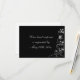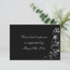 Belas imagens de espiral de diamante falso criam uma borda elegante no lado direito deste cartão de resposta do casamento. As espirais formam folhas e imagens cardíacas em prata brilhante com seu texto em prata no meio. A parte de trás do convite é branca para facilitar a marcação do seu respondente, com o texto personalizado a preto. *O Clip art usado neste design é protegido por direitos autorais pela Encore Software, Inc., que permite o uso a seus licenciadores. Todos os direitos reservados. Observe que a imagem está impressa e não contém brilho. Certifique-se de ver os convites e outros produtos de casamento na nossa loja.