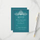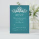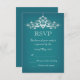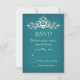 Design de cartão RSVP de casamento elegante com um candelabro prateado muito detalhado em um fundo azul. Esta design vem em vários produtos de papelaria para fazer um tema bonito para toda a sua papelaria de casamento.