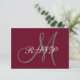 Cartão RSVP de Casamento de Script Elegante de Cinza Burgundy Personalizada com Monograma. Design por Elke Clarke © para MonogramaGallery no Zazzle. Um design clássico e versátil que você pode personalizar com seu texto rsvp específico do casamento e escolher as cores, fontes e tipo de papel de papelaria se você usar o menu editar.