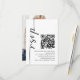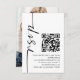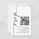 RSVP de Casamento de Código QR de Foto de Caligrafia Moderna, para associar aos seus convites, RSVP está em uma caligrafia elegante definida rodada e à esquerda, com sua mensagem à direita. Personalize facilmente o resto do texto para os seus próprios detalhes e substitua o código QR de amostra pelo seu próprio código simplesmente alterando o URL de amostra pelo seu próprio que será gerado automaticamente. Substitua a imagem de amostra no verso pela sua.