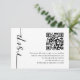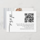 RSVP de Casamento de Código QR de Foto de Caligrafia Minimalista, para associar seus convites, RSVP está em uma caligrafia elegante definida rodada e à esquerda, com sua mensagem à direita. Personalize facilmente o resto do texto para os seus próprios detalhes e substitua o código QR de amostra pelo seu próprio código simplesmente alterando o URL de amostra pelo seu próprio que será gerado automaticamente. Substitua a imagem de amostra no verso pela sua.