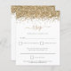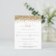 Um valor para o alternativo do ORÇAMENTO em tamanho menor de 4,5 x 5,6" de semirbrilho de 110 lbs, que é de espessura semelhante a um cartão postal (no entanto, não é adequado para uso como cartão postal). POR FAVOR, OBSERVE QUE HÁ UM convite por folha. RSVP de Casamento de Script de Código QR do Glitter Dourado de Orçamento. Uma borda falsa com brilho na parte superior de ambos os lados com um script elegante com traços para o cabeçalho. Troque seu código QR para a página de resposta do site do casamento para obter uma opção conveniente de resposta do alternativo para seus convidados. Para criar um código QR, pesquise online "gerar um código QR"