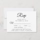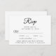 Cartão RSVP de casamento elegante com "Rsvp" em um roteiro de caligrafia, tipografia serif clássica, suas opções personalizadas de entrada de menu e seus nomes unidos por um coração no verso.