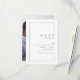 O cartão rsvp de casamento de fotos minimais apresenta o quadro chic moderno e os detalhes da fonte sans serif com a foto do casal no verso, elegante e simples, excelente para o casamento moderno minimalista. Ver todas as peças correspondentes na coleção