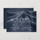 Certifique-se de que os seus convidados possam responder facilmente ao seu dia especial com a nossa Marinha azul-corda-árvore iluminando o cartão RSVP de casamento da floresta. Este design encantador apresenta uma árvore rústica adornada com luzes de cordas, criando uma atmosfera mágica e convidativa. Perfeito para casamentos com temas externos e florestais, este cartão RSVP único complementará lindamente seus convites de casamento e impressionará seus convidados.
