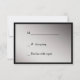 Este cartão de resposta do casamento combina com os Convites de Casamento de Fita Negra Elegante em nossa loja. Ele tem seu texto personalizado a preto sobre um fundo prateado queimado, que é enquadrado em preto dramático. Um elegante design de espiral preto está no topo. A parte traseira da placa tem o mesmo fundo prateado e é fácil para o seu entrevistado marcar. Simples, elegante e elegante!