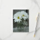 Um rsvp de casamento com uma foto de um pote de margaridas sentado em frente a um fundo de madeira de galinha.