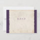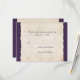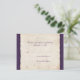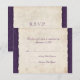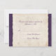 O RSVP apresenta um tom roxo escuro nos lados com um padrão friável e textura de papel pergaminho rasgada no meio para uma sensação de casamento rústica e vintage country.