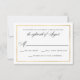 Um cartão RSVP de casamento maravilhosamente elegante com um roteiro de caligrafia detalhando, uma borda fina de ouro e textura de mármore no fundo.