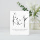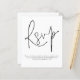 Um valor para o alternativo do ORÇAMENTO em tamanho menor de 4,5 x 5,6" de semirbrilho de 110 lbs, que é de espessura semelhante a um cartão postal (no entanto, não é adequado para uso como cartão postal). POR FAVOR, OBSERVE QUE HÁ UM convite por folha. RSVP de Casamento de Script de Código QR Simples. Um gabinete de opções conveniente para pedir aos seus convidados que digitalizem o seu código QR para o seu site de casamento para RSVP. Uma tipografia de na moda set em preto para o cabeçalho principal RSVP complementando o resto do texto que você pode personalizar facilmente, com código QR no verso. Simplesmente substitua por você.