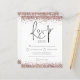 Um valor para o alternativo do ORÇAMENTO em tamanho menor de 4,5 x 5,6" de semirbrilho de 110 lbs, que é de espessura semelhante a um cartão postal (no entanto, não é adequado para uso como cartão postal). POR FAVOR, NOTE que existe UM por folha. RSVP de Casamento de Script Glitter Dourado do Rosa de Orçamento. Uma tipografia de na moda set em preto para o título principal RSVP complementando o resto do texto que você pode personalizar facilmente. Uma borda de falso brilho em ouro de rosa está nas bordas superior e inferior de ambos os lados.